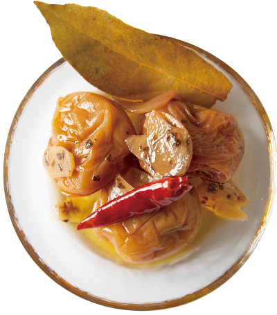 Ingredients: Ume (from Ita, Shimada, Shizuoka), olive oil, garlic, basil, red chili, bay leaves